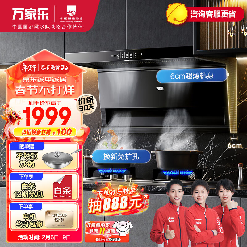 万家乐顶侧双吸油烟机 23立方抽油烟机烟灶套装自清洗换新免扩孔小尺寸不锈钢灶具套装TAK5+AY4G天然气价格:2099.00元!