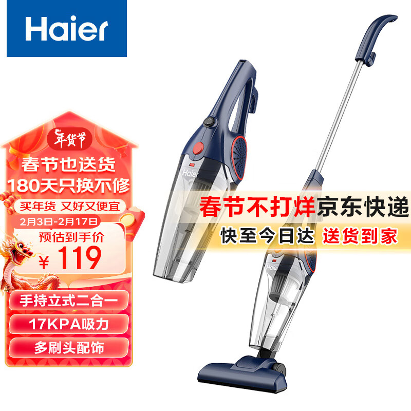 海尔(Haier)吸尘器 家用手持立式有线吸尘器 二合一强劲大吸力ZL605G价格:119.00元!
