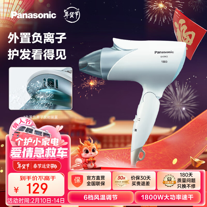 松下(Panasonic)电吹风机 大功率家用高速大风力速干折叠便携学生宿舍用礼物吹发负离子护发吹风筒ENE2价格:119.00元!