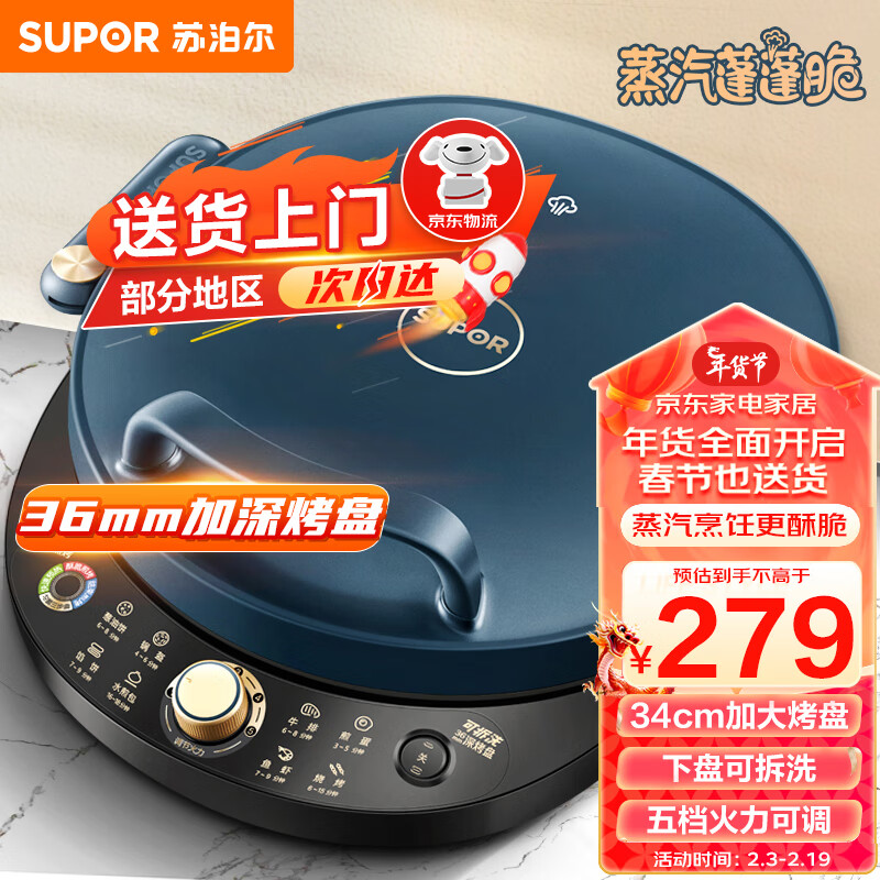 苏泊尔(SUPOR)电饼铛家用电饼档双面加热 可拆洗三明治机早餐机煎饼锅 加深加大多功能烙饼锅JD34RQ877价格:309.00元!