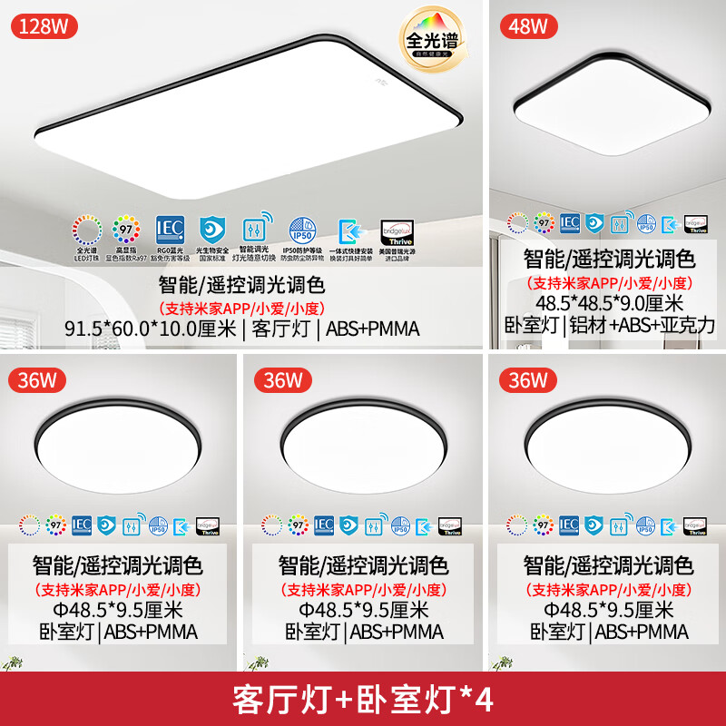 雷士(NVC)吸顶灯客厅大灯现代led照明全屋米家智能套餐小白灯黑潮S舒适光价格:2998.00元!
