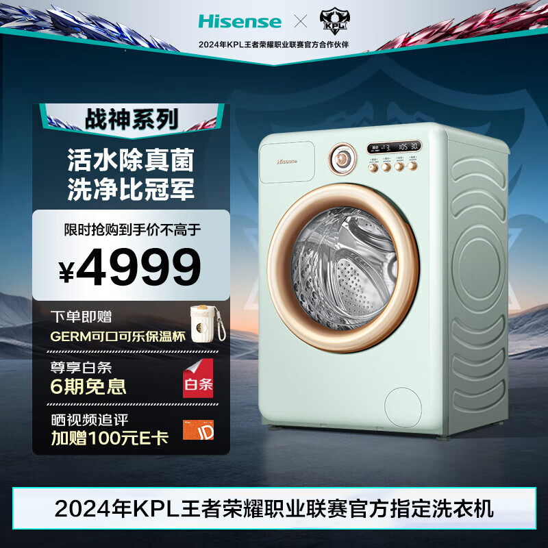 海信罗马假日洗衣机罗马绿 全自动滚筒洗衣机 意式复古10公斤家用大容量洗烘一体超薄活水洗3.0WD100R4价格:4999.00元!