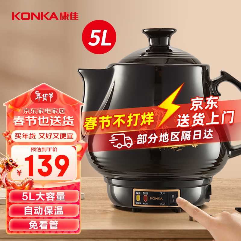康佳(KONKA)养生壶 煎药壶 中药壶熬药罐 全自动陶瓷炖药锅电子药煲煎药机 家用汤锅5L KJYH-WHG456价格:139.00元!