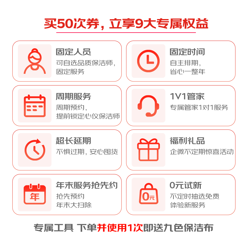 京东家政京东家政4小时日常保洁 26次电子兑换券配置参数: