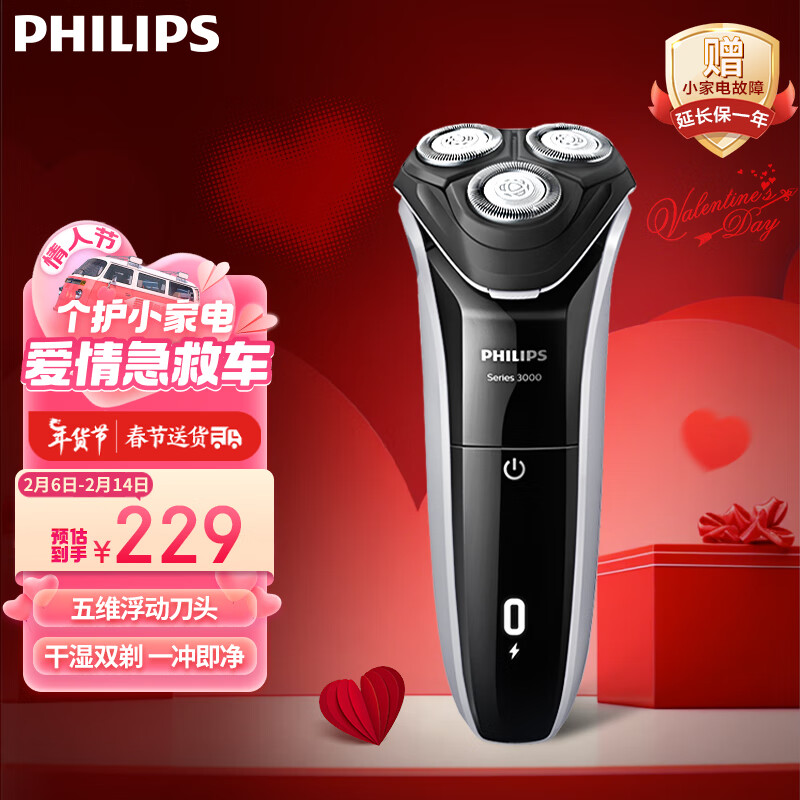 飞利浦(PHILIPS)电动剃须刀新3系 干湿双剃刮胡刀 男士礼物 送男友 送老公价格:229.00元!