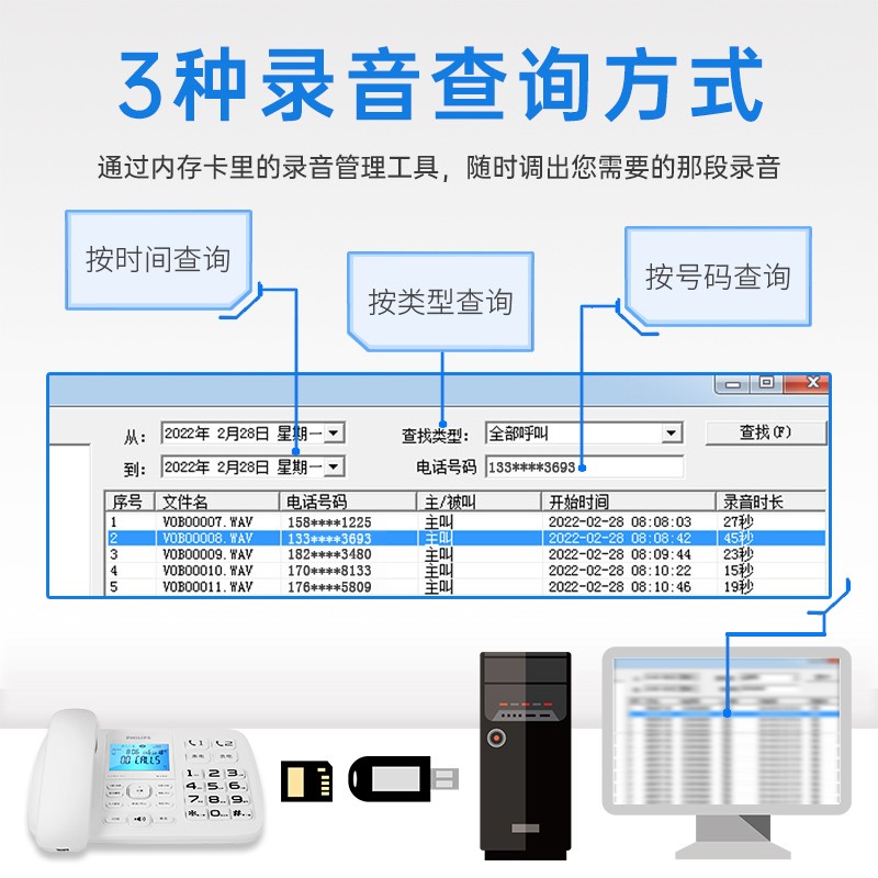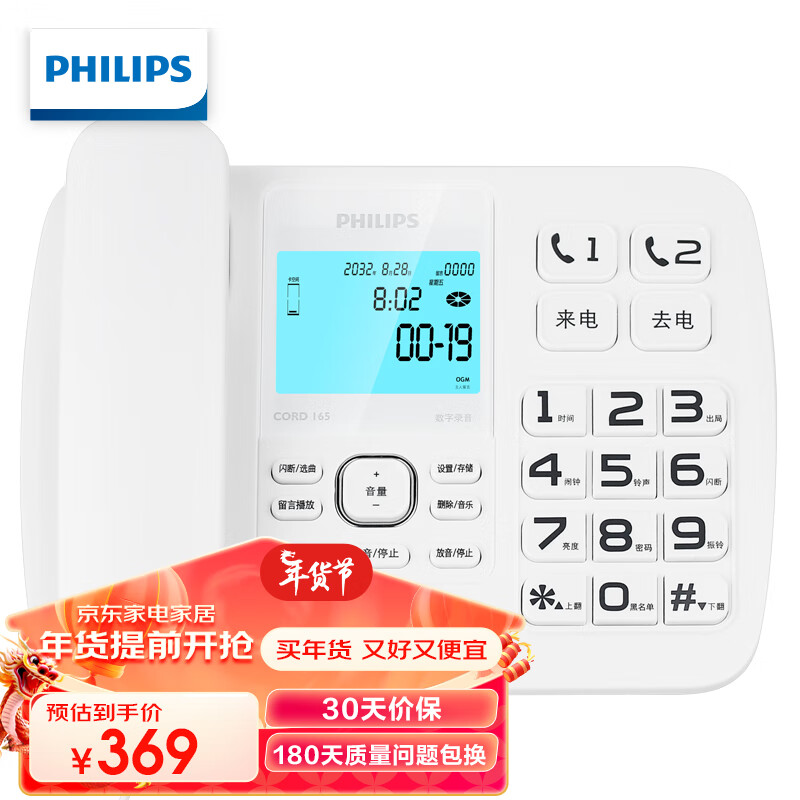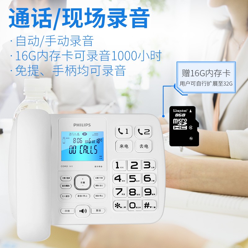 飞利浦(PHILIPS)录音电话机 固定座机 办公家用 自动 手动录音 16G存储卡 放音密码保护 CORD165 (白色)价格:369.00元!