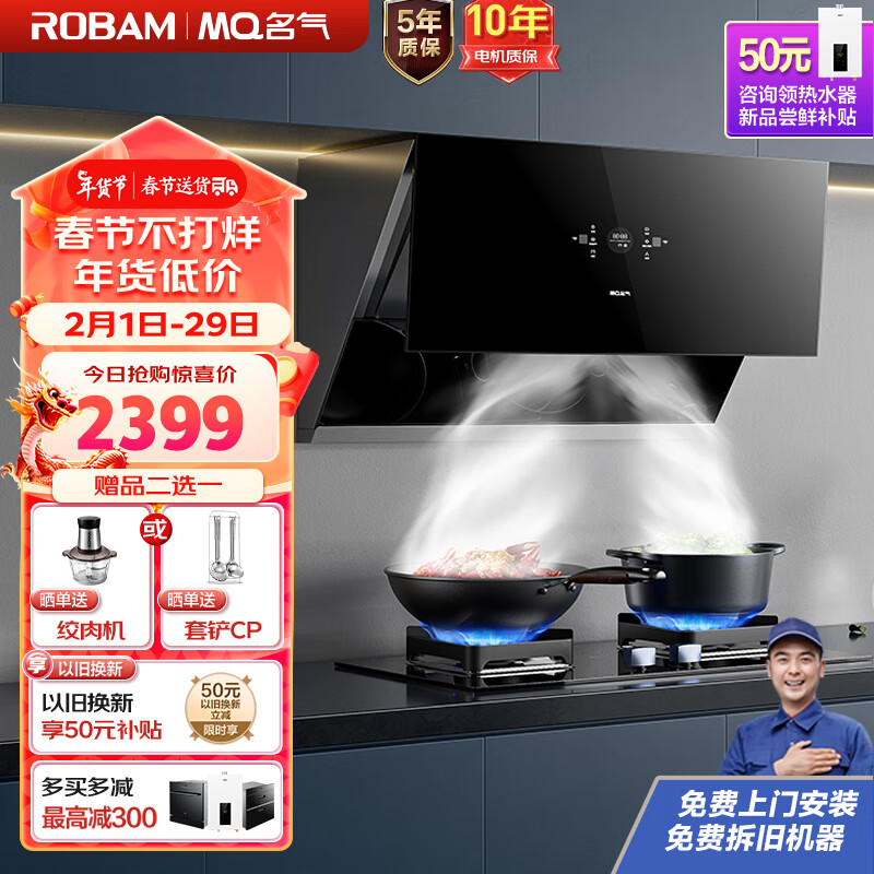 名气(MQ)老板抽油烟机烟灶套装23大吸力家用侧吸烟机燃气灶具套装天然气2570A+6812BT价格:2399.00元!