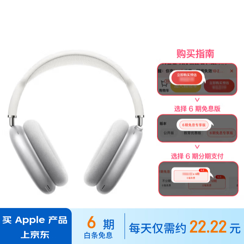 Apple/苹果【6期免息】 AirPods Max-银色 无线蓝牙主动降耳头戴式耳机 适用iPhone/iPad/Watch/Mac价格:3999.00元!