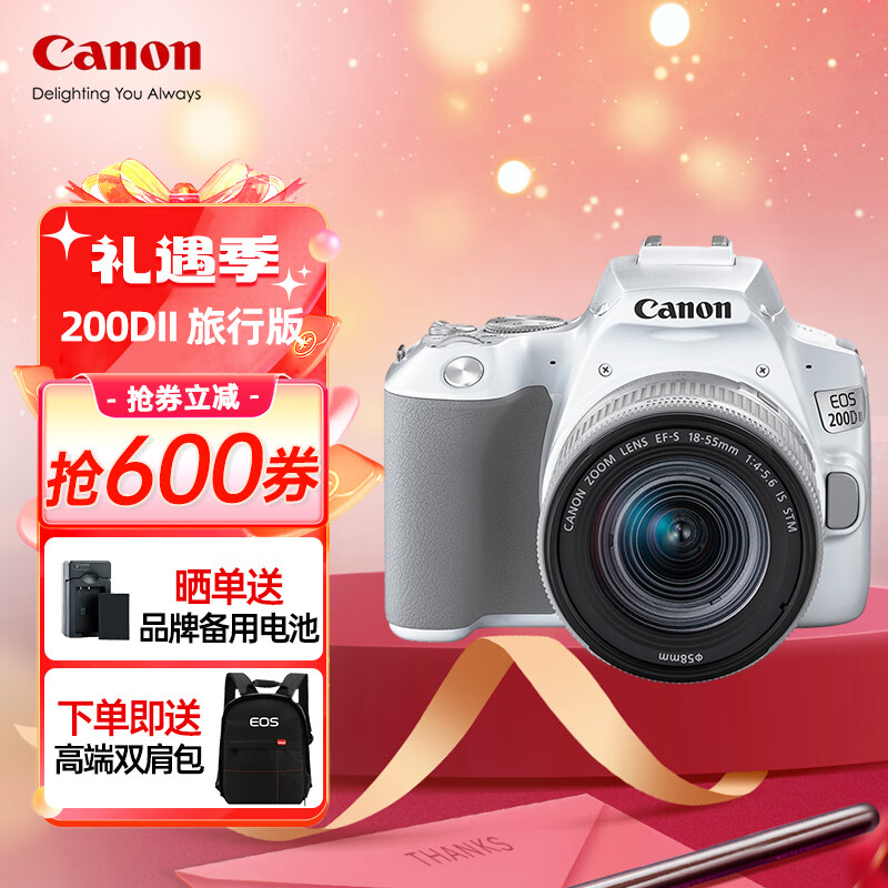 佳能(Canon) EOS200d二代入门单反高清vlog数码照相机视频直播相机 EOS 200D II(18-55mm)白旅行版价格:8099.00元!