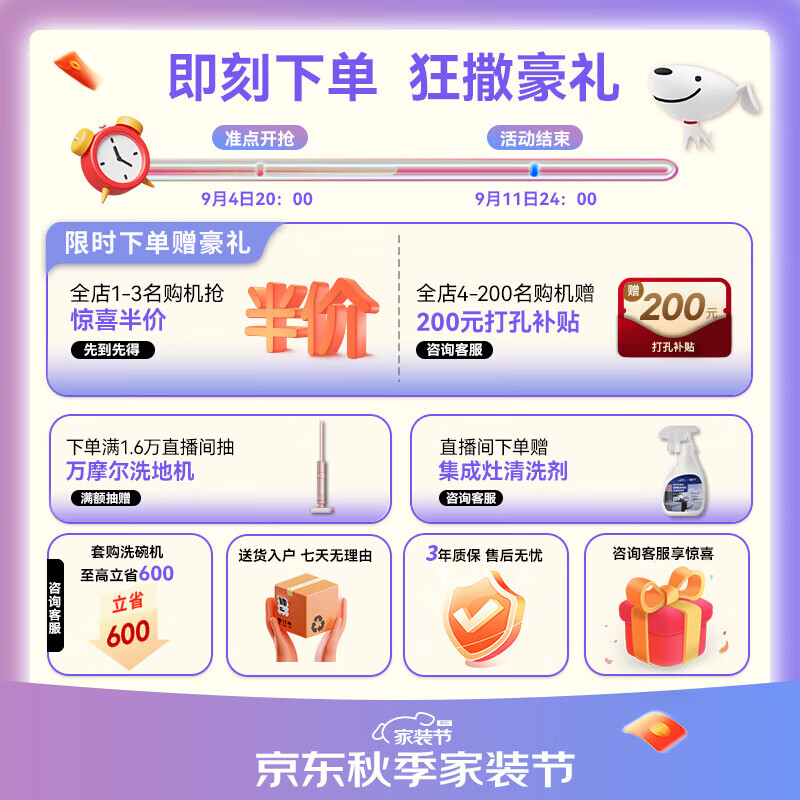 5、这次购物非常满意,实体店买不到的价格在官方双11购入优惠特别多,安装师傅也很棒我想不到的都给我考虑到了,集成灶风力很大也不吵,一边炒菜一边蒸鱼满意的不得了??