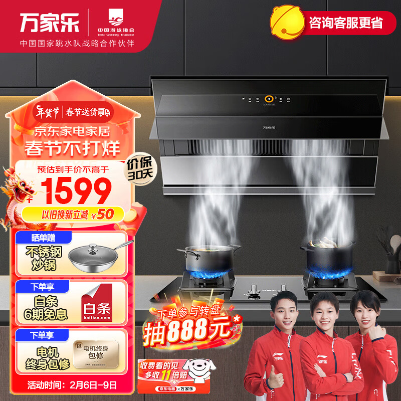 万家乐 抽油烟机 侧吸式烟灶套装22m3/min大吸力挥手智控家用吸油烟机燃气灶具套装AL061+KA031B天然气价格:1799.00元!