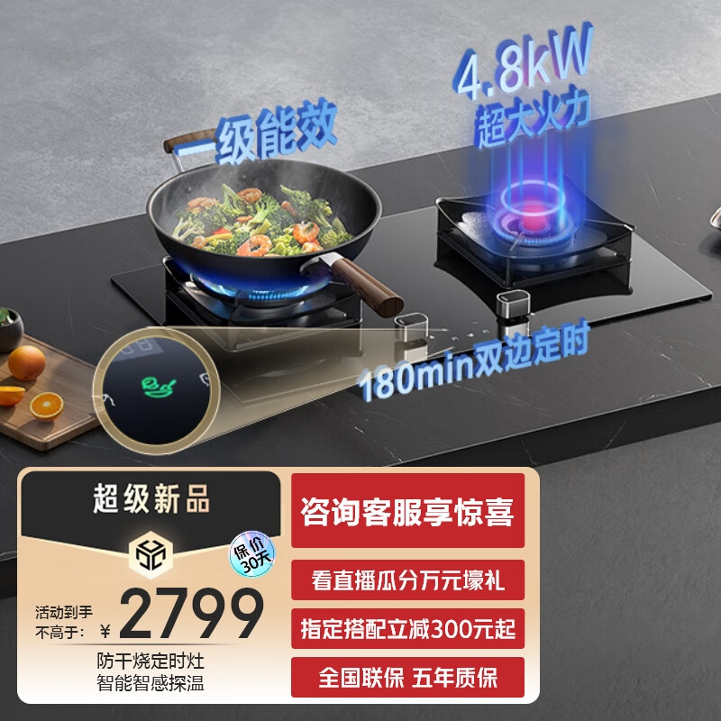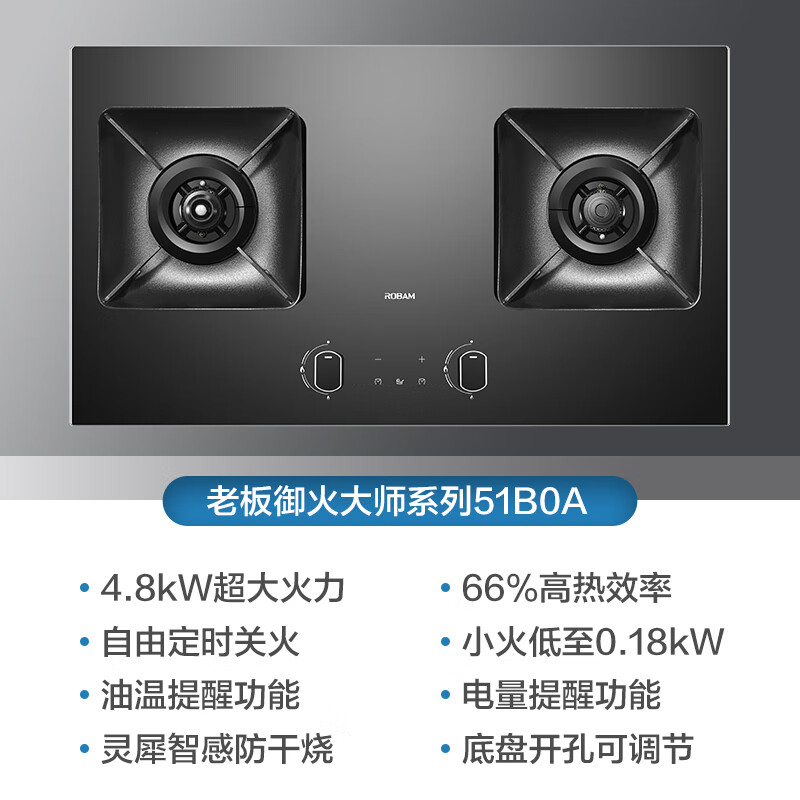 老板(Robam)JZY-51B0A家用灵犀智感定时防干烧大火力嵌入式燃气灶钢化玻璃易清洁可调节底盘(液化气)价格:2799.00元!