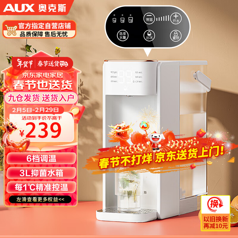 奥克斯(AUX)即热台式饮水机 速热小型智能家用迷你便携冲泡机4段水温桶箱两用【±1°可调温】3L价格:265.00元!