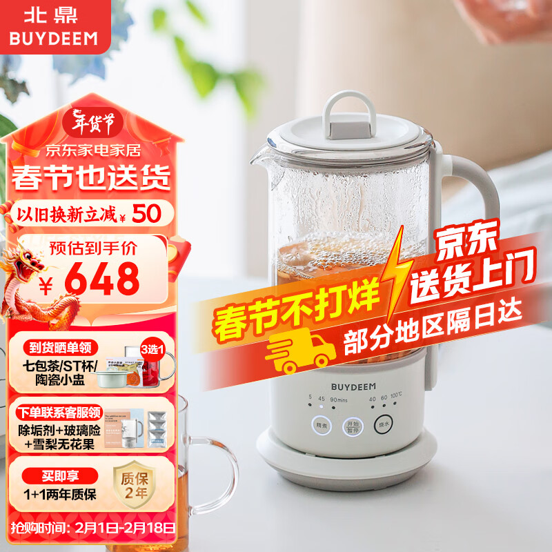 北鼎(Buydeem)养生壶烧水壶多功能煮茶器迷你养生杯办公室便携分体式煮茶器 K36本白色(不含萃取篮)价格:648.00元!