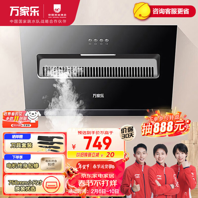 万家乐 抽油烟机 18m3/min侧吸式小尺寸大吸力油烟机小户型出租家用吸油烟机 一级能效CXW-280-AL031价格:1048.00元!