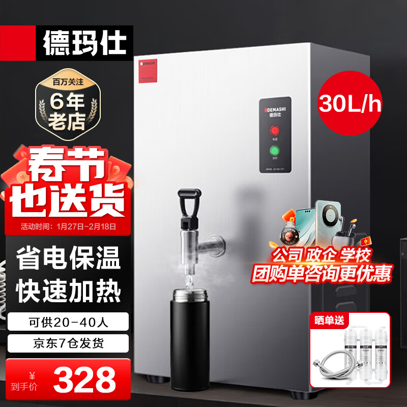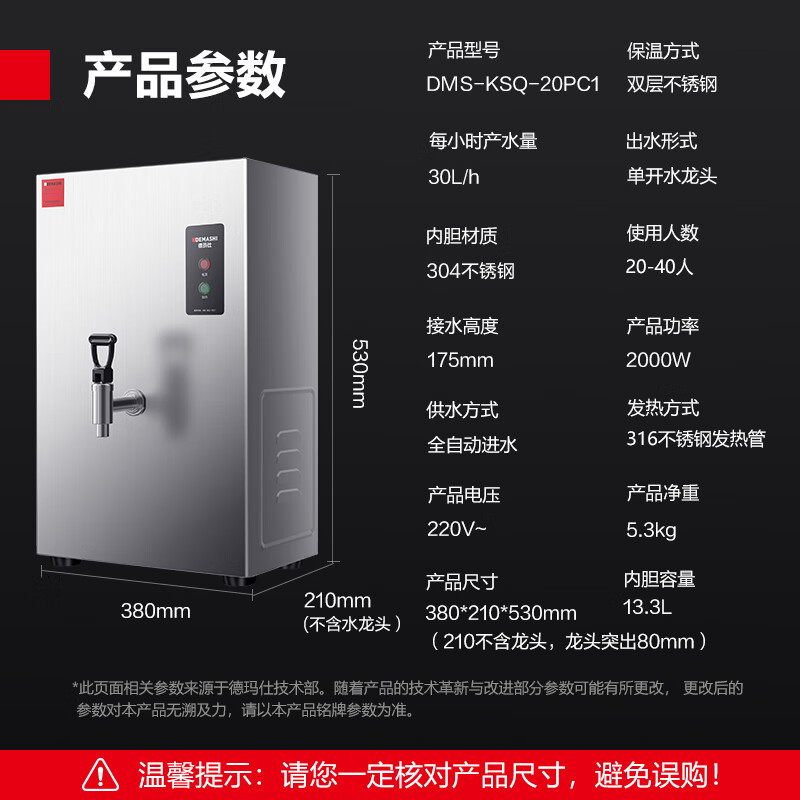 德玛仕DEMASHI开水器商用开水机电热工厂公司用全自动直饮水热水机热水箱开水桶炉DMS-KSQ-20PC1 30L/h价格:328.00元!