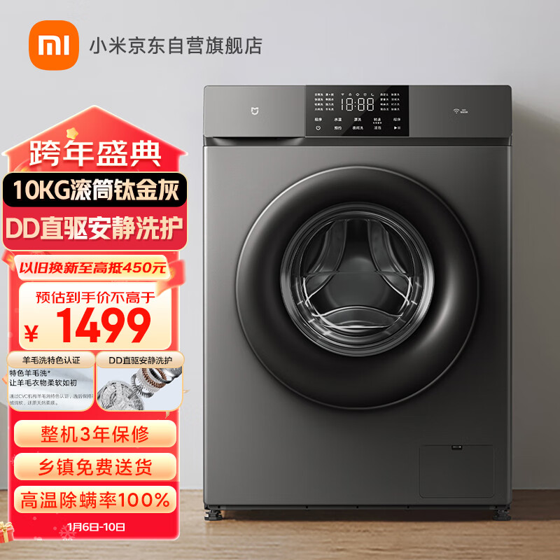 米家小米米家10kg钛金灰滚筒洗衣机全自动 直驱电机低噪节能深层除菌除螨 健康桶自洁XQG100MJ104价格:1499.00元!