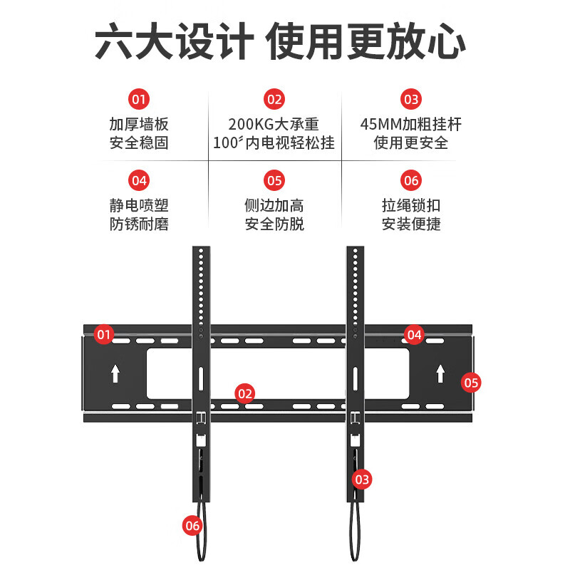 MS(50-100英寸)电视机挂架固定加厚壁挂架品牌通用小米创维海信TCL华为商用大承重百寸电视支架G08价格:119.00元!