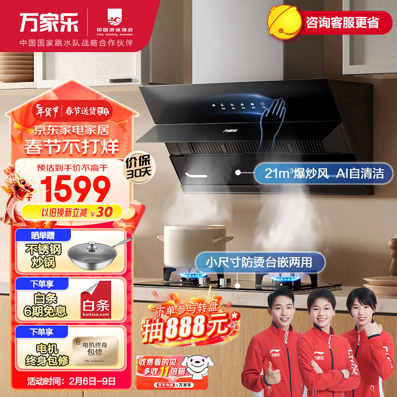 万家乐 抽油烟机 侧吸式烟灶套装自清洗 21m3/min大吸力挥手智控 5.0kw燃气灶烟机灶具套装AJ4+AY4天然气价格:1799.00元!