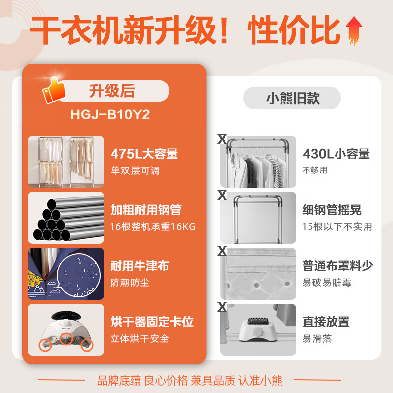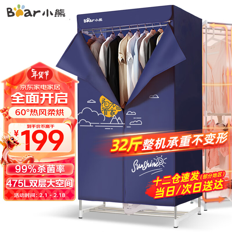 小熊(Bear)烘干机家用干衣机烘衣机衣服烘干布罩衣柜除菌可定时大容量婴儿衣物内裤内衣消毒机HGJ-B10Y2价格:221.00元!