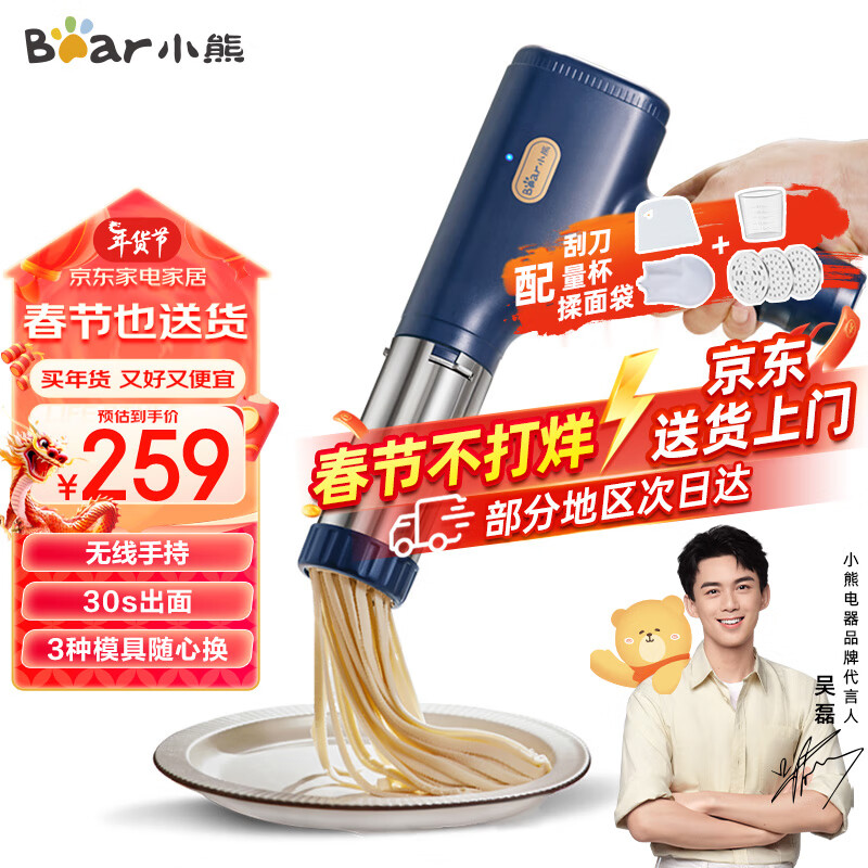 小熊(Bear )面条机家用压面机手持压面枪小型电动自动不锈钢压面条机 YMJ-A01V1价格:259.00元!