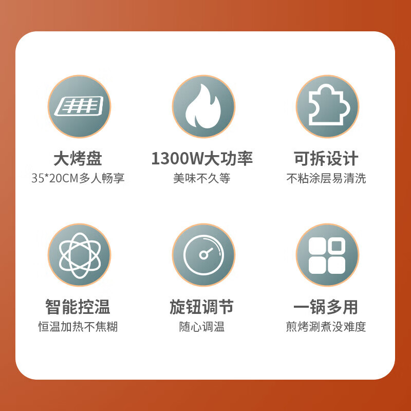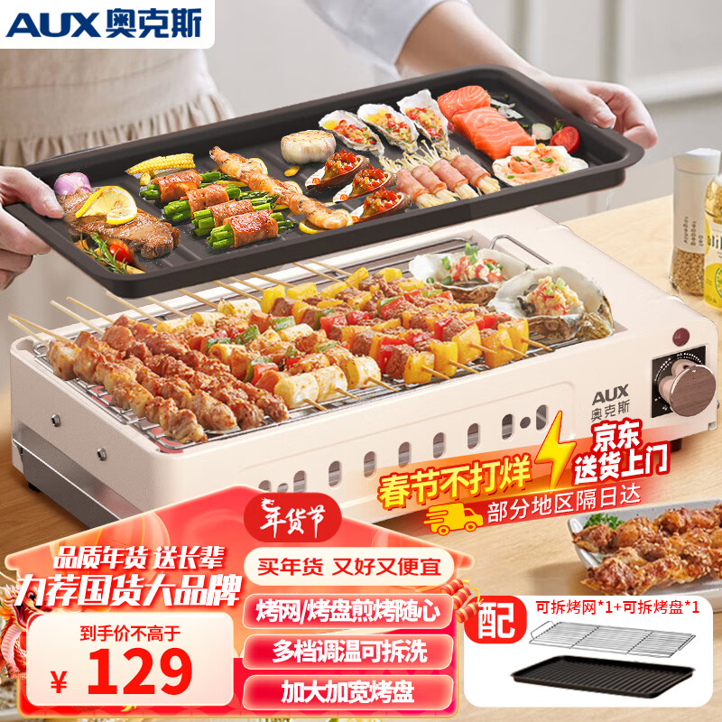 奥克斯(AUX)电烤炉 烧烤炉 电烤盘 烤盘 烤串机烧烤架烤肉盘家用大功率不粘烤肉炉LA-SKL15价格:129.00元!
