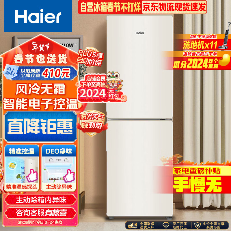 海尔(Haier)190升风冷两门双门节能低噪小型家用电冰箱迷你宿舍租房小巧不占地方以旧换新BCD-190WLHC2Z0L9价格:1299.00元!