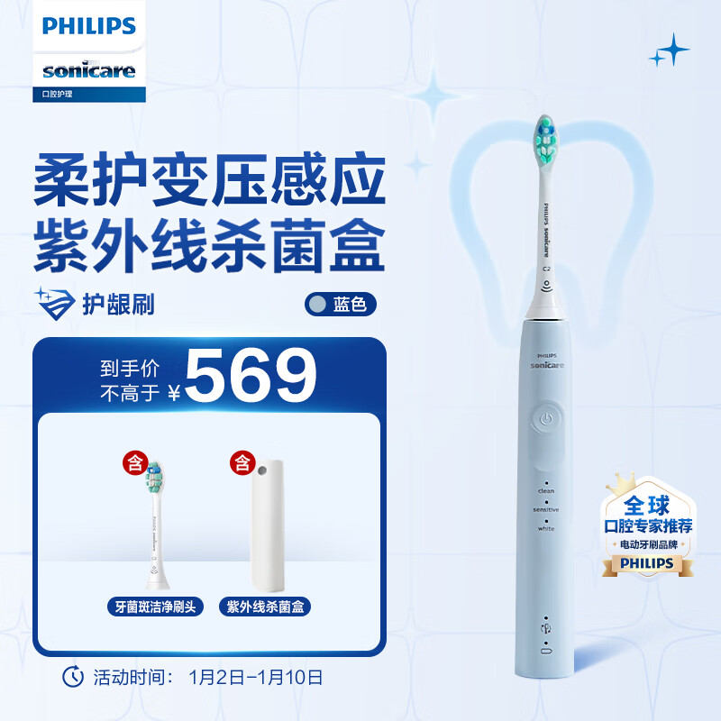 飞利浦(PHILIPS)电动牙刷成人 健康护龈系列3种模式 7倍清除牙菌斑 蓝色HX3697/22 送礼 新年礼物价格:649.00元!