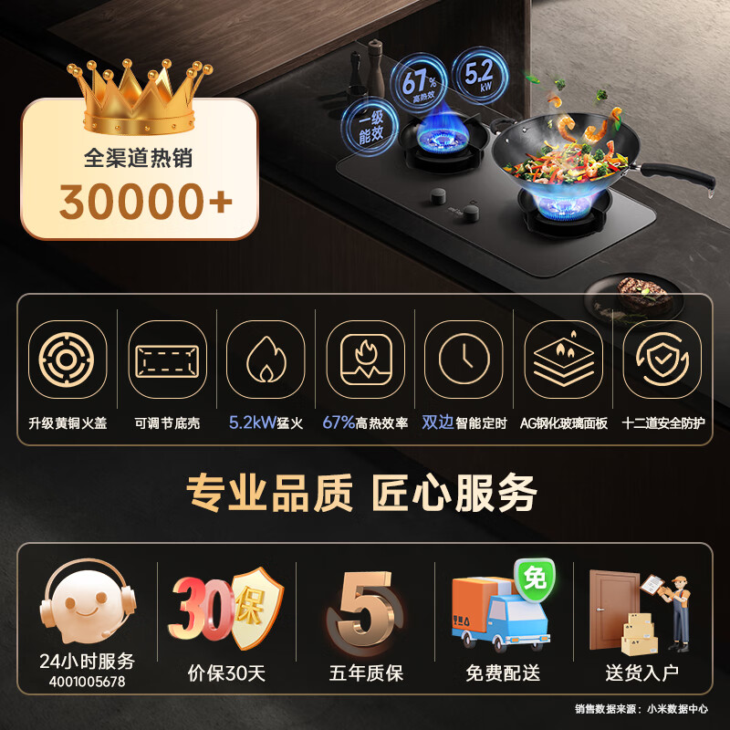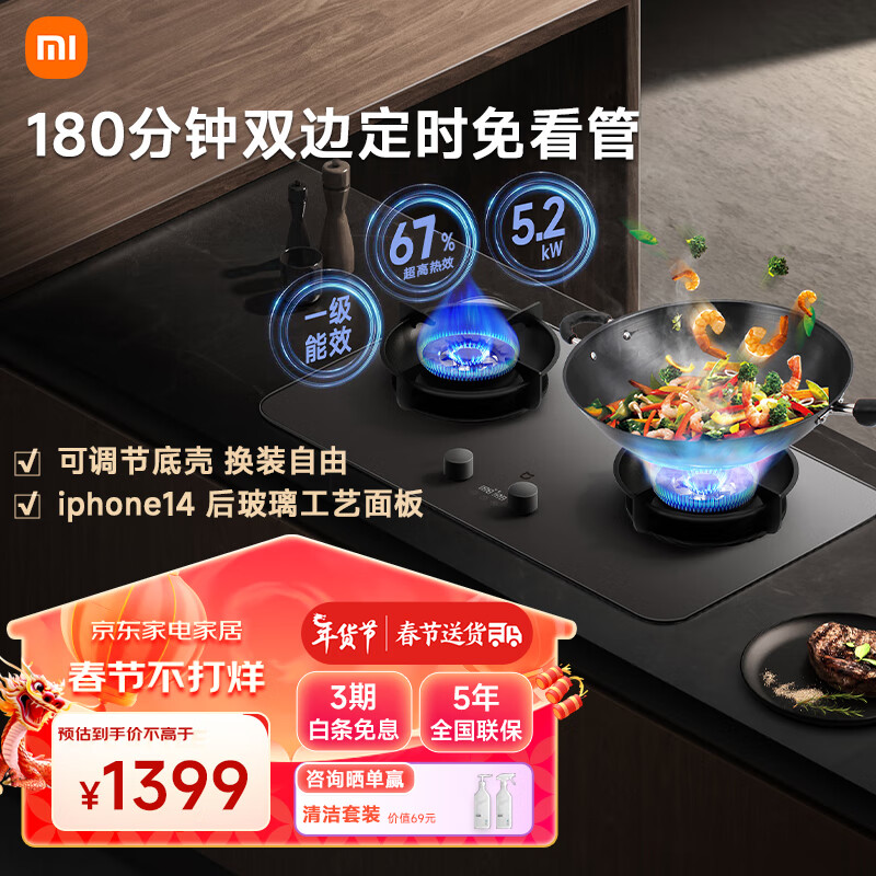 米家小米燃气灶天然气 家用双灶具5.2kW猛火 智能双边定时 底座可调节MJ03CY价格:1299.00元!