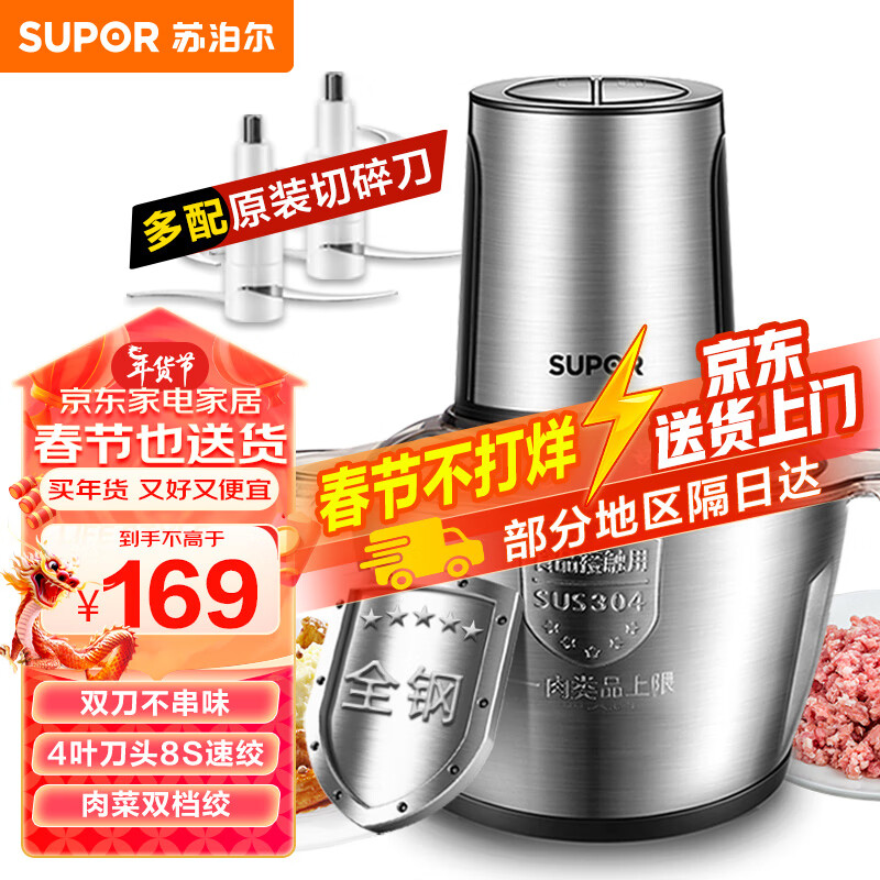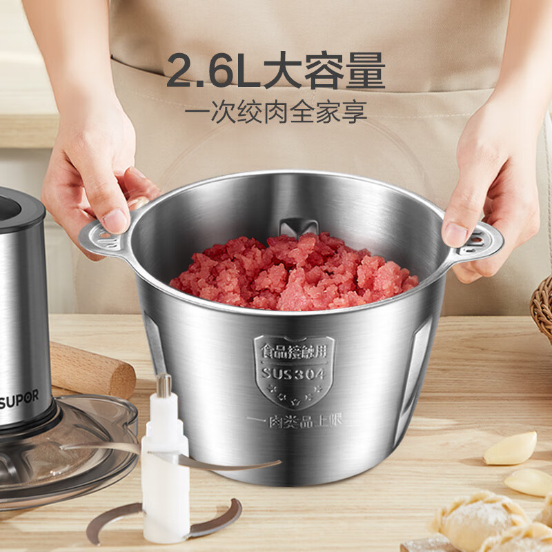 苏泊尔(SUPOR)双刀绞肉机不锈钢多能料理机家用2.6L大容量电动绞馅机搅拌机年货小家电送长辈JR18HS-400价格:169.00元!