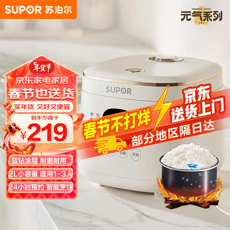 苏泊尔(SUPOR)电饭煲电饭锅 电饭煲1-3人 加厚蓝钻内胆 24小时预约智能烹饪家用智能电饭煲SF20FC945价格:219.00元!