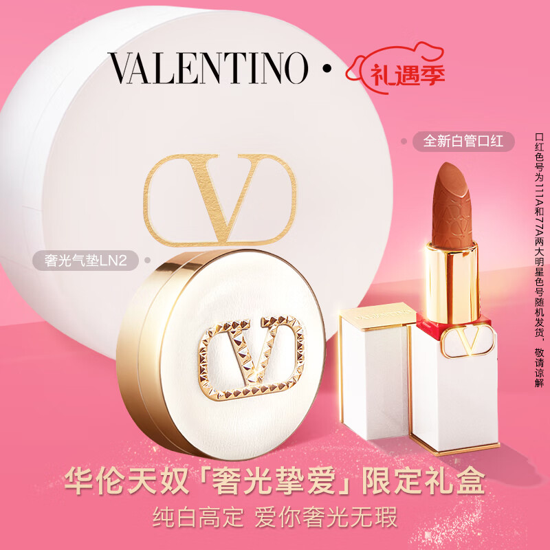 VALENTINO华伦天奴唇气垫礼盒套装白管口红+白气垫LN2 新年礼物送女友价格:1075.00元!