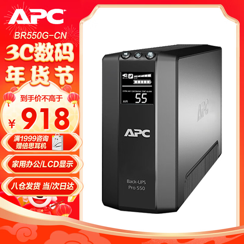 APC施耐德BR550G-CN ups不间断电源 330W/550VA nas电脑网络设备家用商务办公应急备用电源电池价格:918.00元!