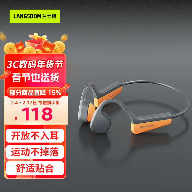 兰士顿 骨传导耳机 蓝牙耳机运动跑步 无线不入耳挂耳式骑行适用于苹果华为oppo vivo小米手机BS17橙灰色价格:149.00元!