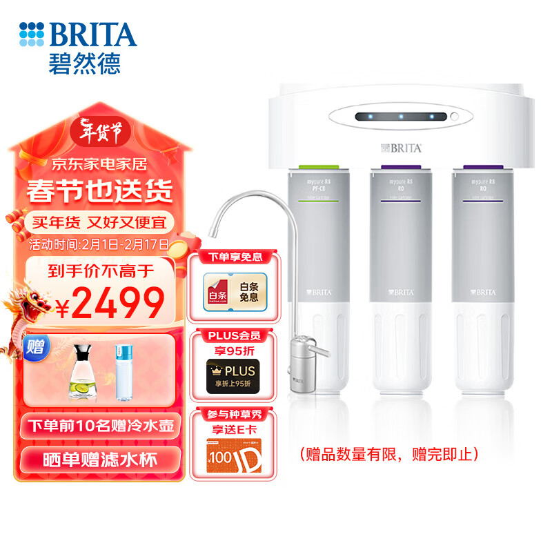 碧然德(BRITA)德国品牌 净水器 家用 双RO反渗透过滤器Mypure R8大流量 直饮净水机价格:2499.00元!