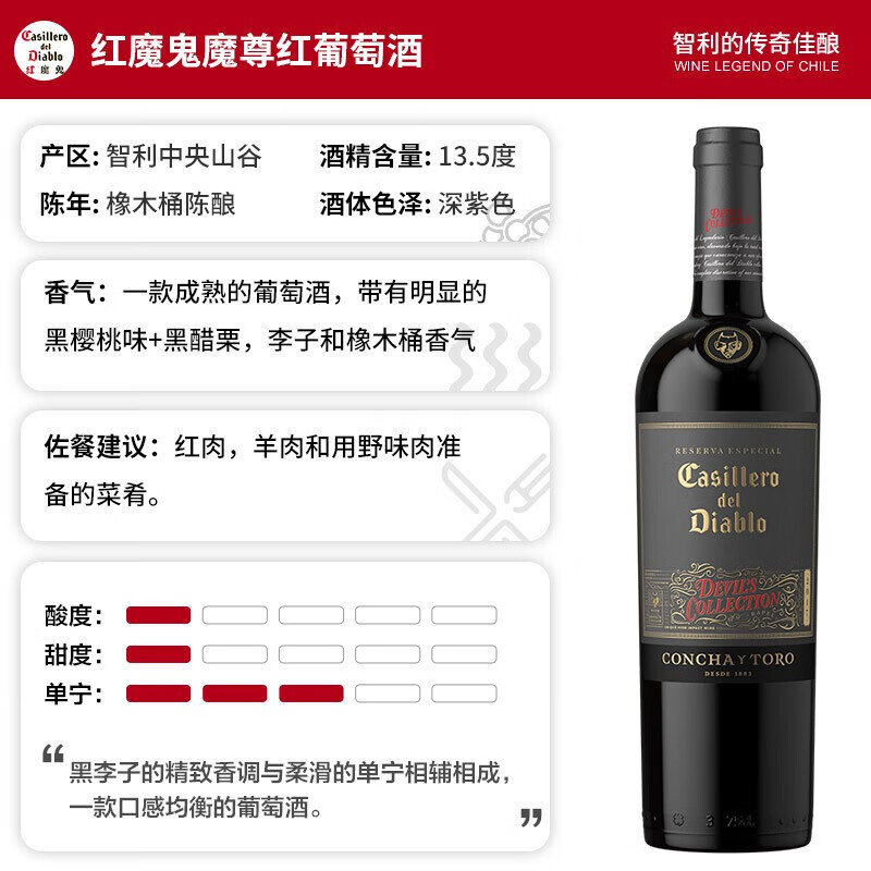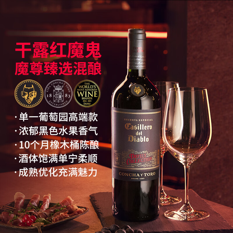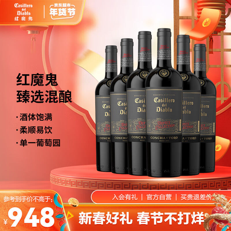 红魔鬼(Casillero del Diablo)干露魔尊红酒混酿葡萄酒750ml*6整箱拜年货送礼物智利原瓶进口价格:948.00元!