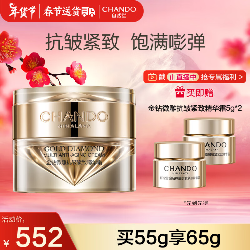 自然堂(CHANDO)金钻微雕抗皱紧致精华霜55g(保湿面霜提亮淡化干纹细纹提拉紧致)价格:552.00元!