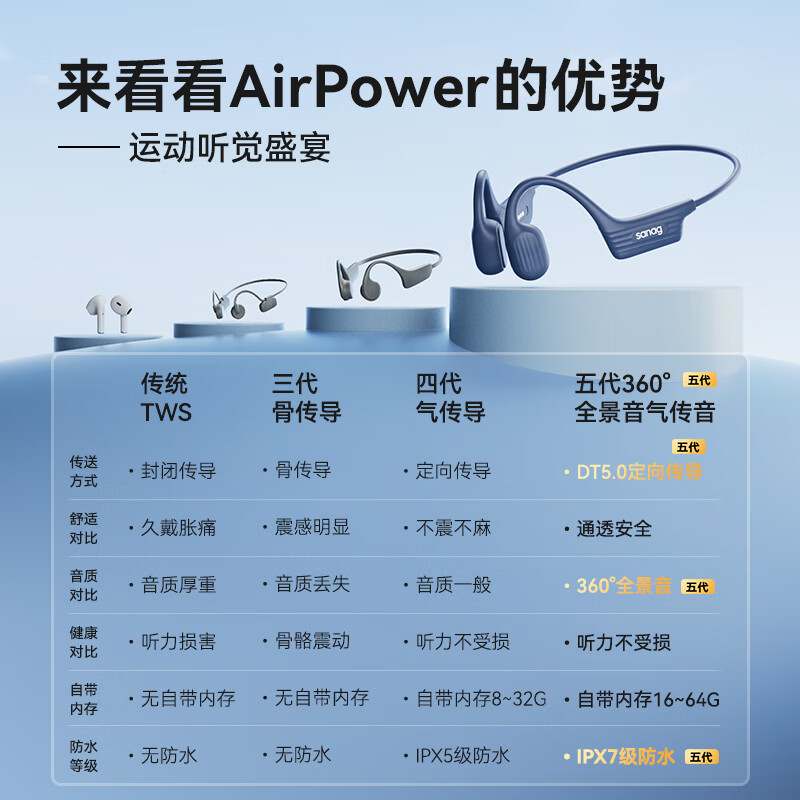 SANAG塞那 蓝牙耳机不入耳开放式气传导无线挂耳式运动跑步降噪防水长续航适用华为 火焰橙 32G价格:219.00元!