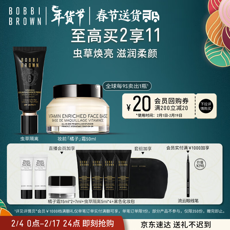 芭比波朗(Bobbi Brown)妆前橘子面霜50ML+虫草隔离40ML 生日礼物 送女友价格:1085.00元!