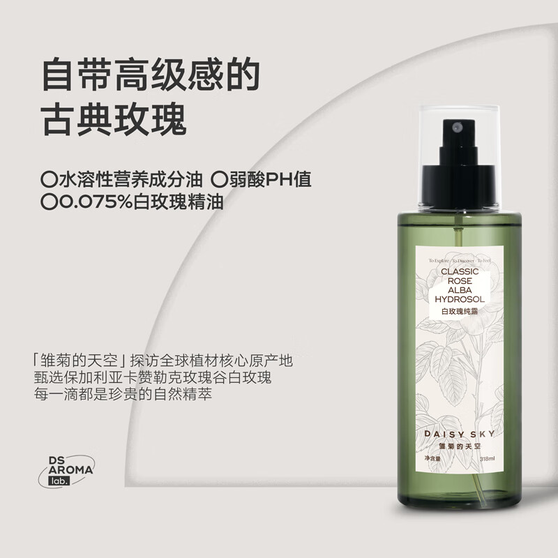 雏菊的天空保加利亚白玫瑰纯露补水喷雾滋润透亮玫瑰水318ml湿敷水礼物价格:178.00元!