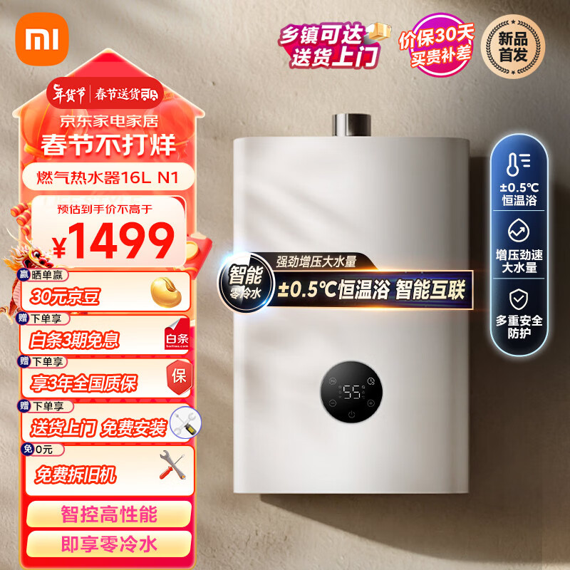 米家小米16升燃气热水器天然气水气双调智能恒温护肤零冷水 ECO节能净滤除菌护肤洗智慧节能JSQ30-MJ03价格:1499.00元!