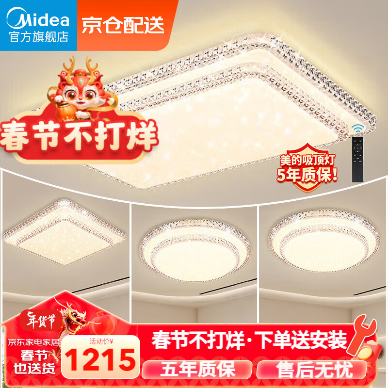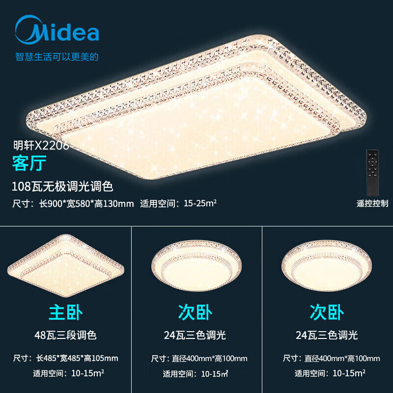 美的(Midea)LED吸顶灯现代轻奢客厅餐厅卧室灯具仿水晶灯具套餐三室一厅价格:1215.00元!