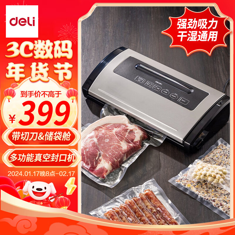 得力家用商用抽真空封口机真空包装机食品塑封机全自动真空机干湿两用腊肉真空保鲜打包机带裁刀可储袋价格:359.00元!