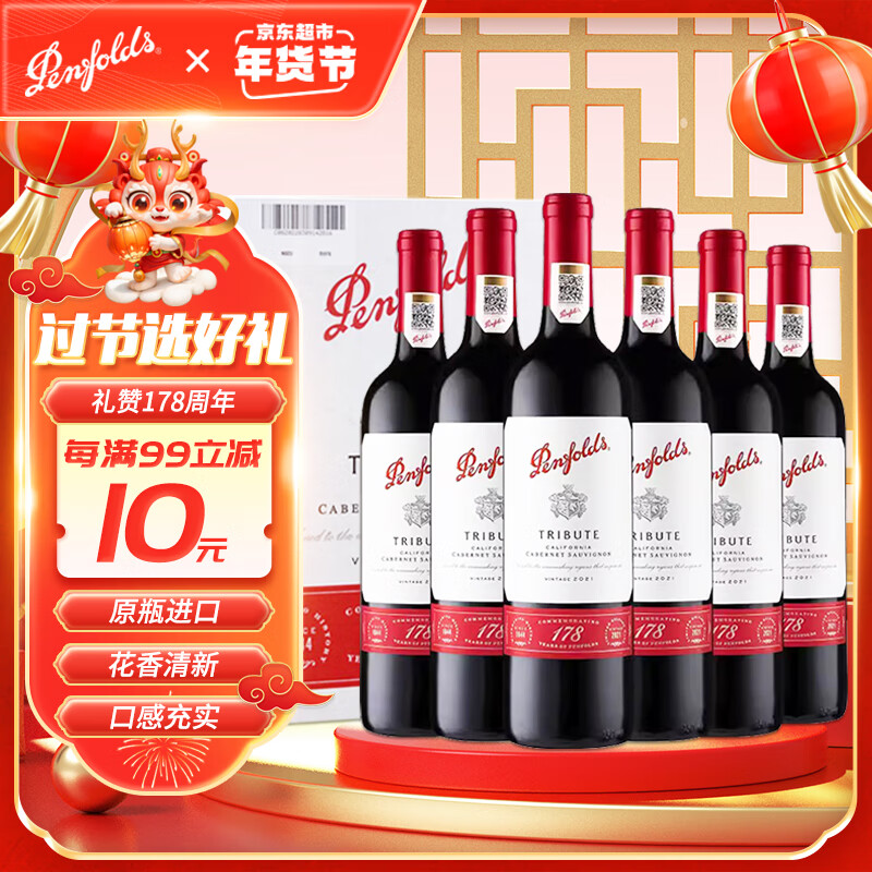 奔富(Penfolds)礼赞系列178周年加州赤霞珠红葡萄酒750ml *6 整箱装价格:2288.00元!
