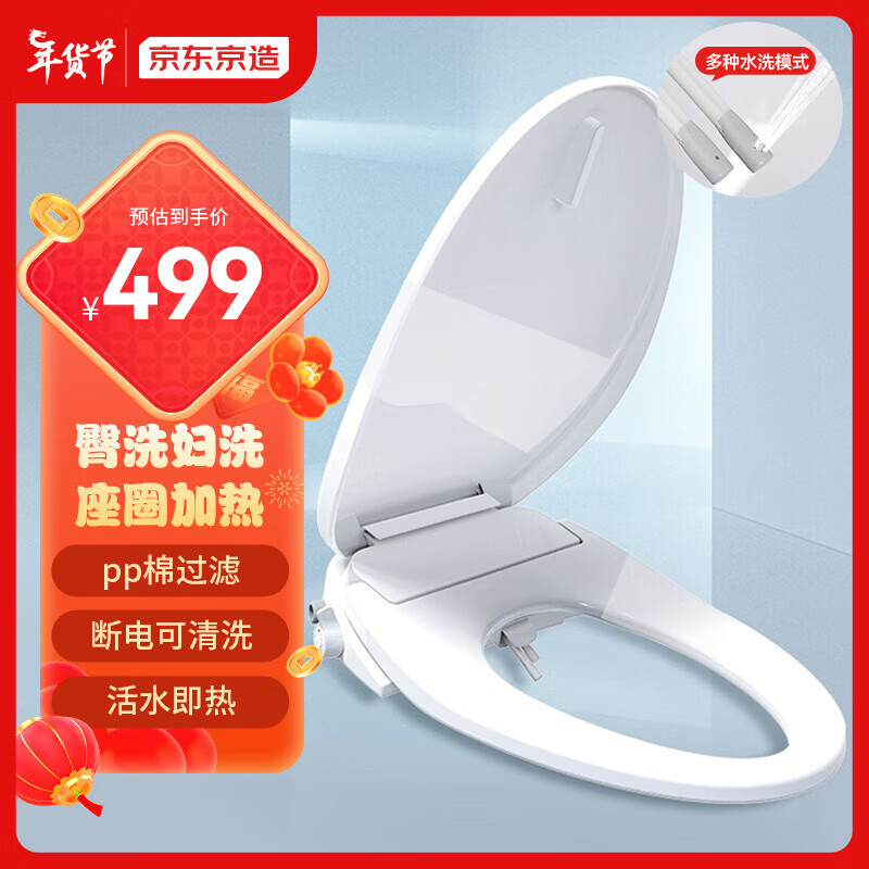 京东京造 智能马桶盖标准版 多功能全自动清洗 座圈加热 不含安装价格:499.00元!