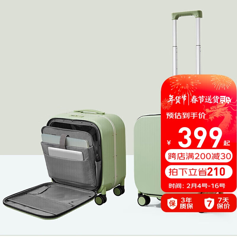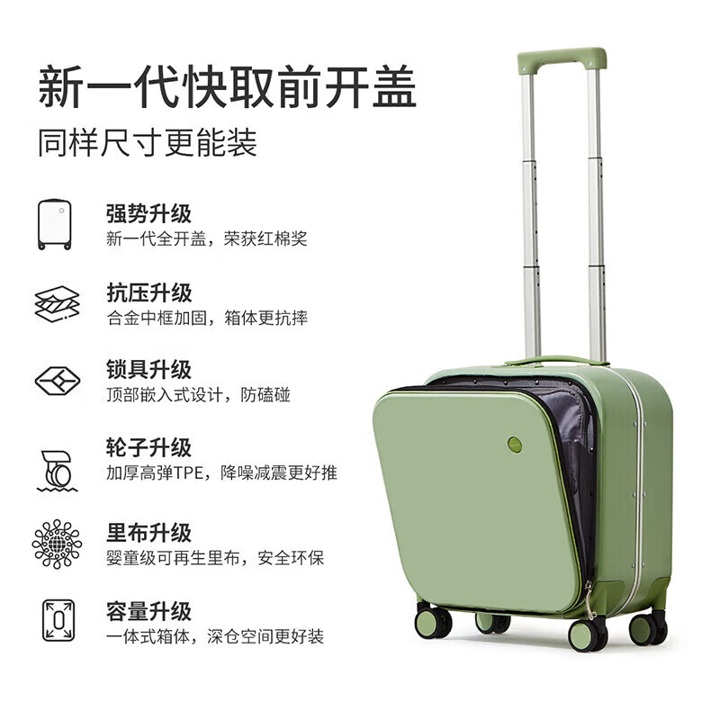 米熙前开盖拉杆箱子行李箱大容量铝框箱男旅行箱包女18英寸牛油果绿60价格:609.00元!