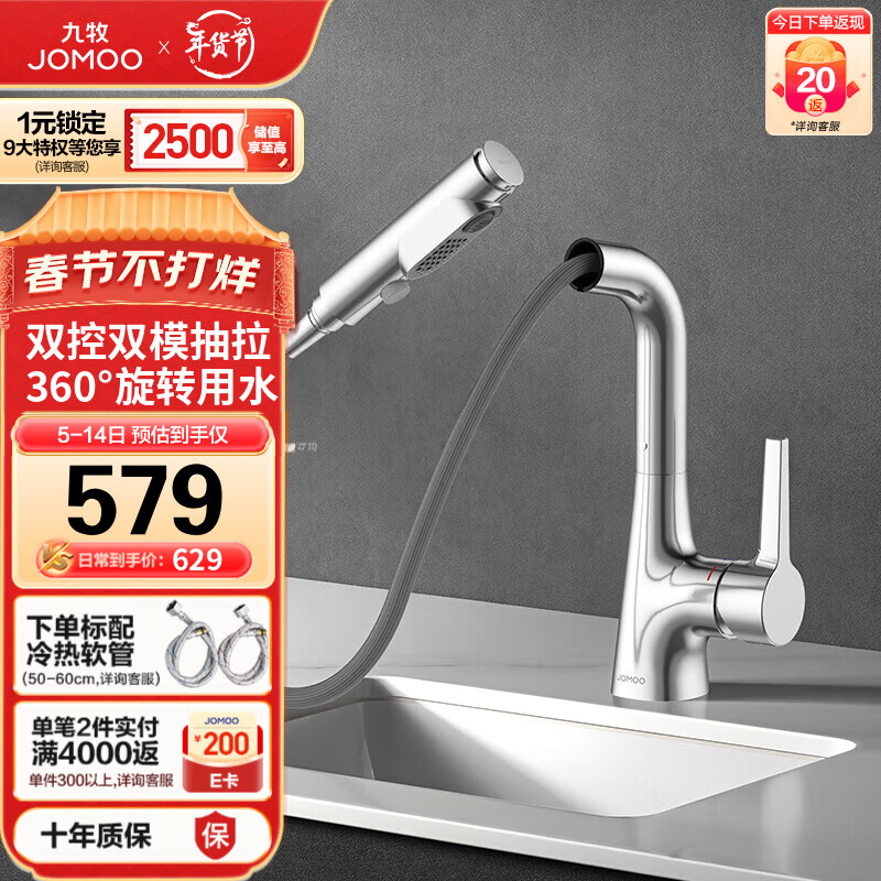 九牧(JOMOO)多功能抽拉式可旋转一键止水双控面盆龙头 32397-594/1B-Z价格:619.00元!
