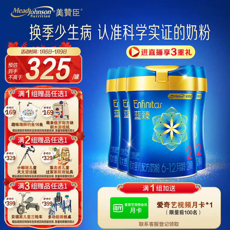 美赞臣蓝臻 2段较大婴儿配方奶粉 (6-12月)820G*4 整箱装价格:1477.27元!