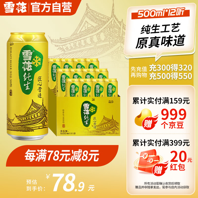 雪花啤酒(Snowbeer) 纯生 500ml*12听 【纯生工艺酿造】价格:86.90元!