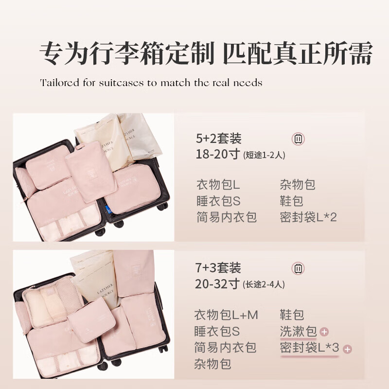 EACHY旅行收纳袋行李箱打包袋衣服内衣收纳分类整理套装 7件套价格:69.00元!